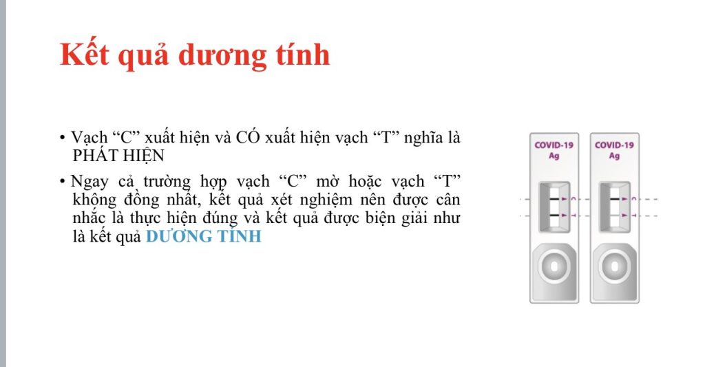 Kết quả dương tính: Xuất hiện cả vạch chữ C và vạch chữ T