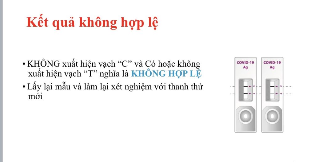 Kết quả không có giá trị: Cả vạch chứng C và vạch kết quả T không xuất hiện hoặc chỉ xuất hiện vạch kết quả T.